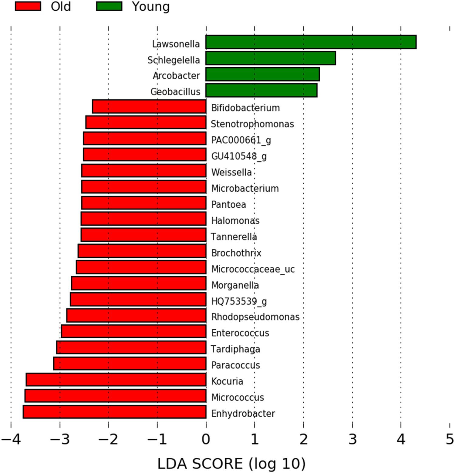 圖7 LEfSe分析結果顯示24個細菌分類群存在顯著差異